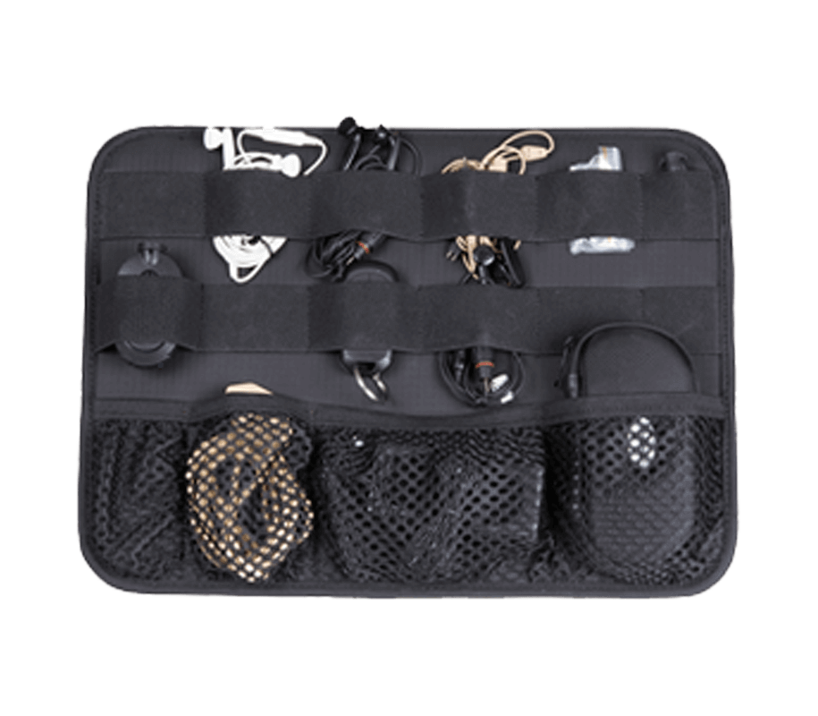 Mission Critical Wireless Covert Pack-N-Go Kit, Advanced. Kit includes: All contents of Covert Pack-n-Go Kit plus RLN4922 Completely Discreet Earpiece Kit and NNTN8385 Wireless Neckloop Y-adapter