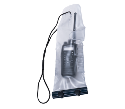This waterproof bag fits any Motorola two-way radio and includes a convenient carrying strap.