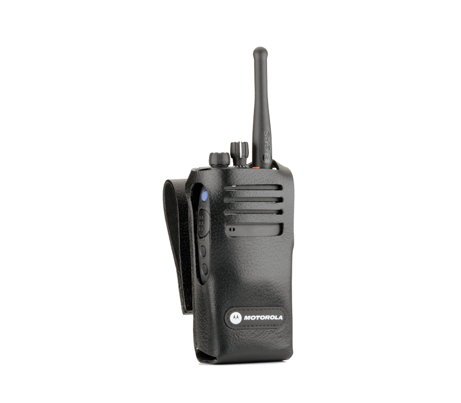 Carrying cases are available in sizes designed to fit your radio and battery and permit audio to be heard clearly. This hard leather case with 3-inch swivel belt loop is designed to work with the XPR 6000 series of non-display radios. Swivel model cases secure to a belt loop and allow the case to swing freely from side to side. The swivel latch system also allows the radio and case to be removed from the belt loop by simply inverting the case and lifting it up and out of the belt loop.