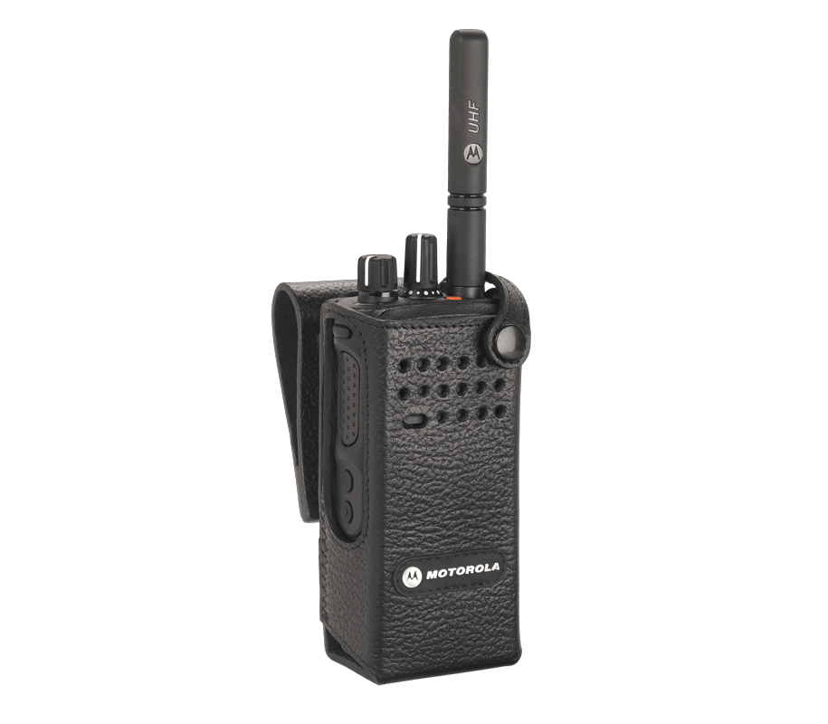 Carrying cases are available in sizes designed to fit your radio and battery and permit audio to be heard clearly. This hard leather case with 2.5-inch swivel belt loop is designed to work with the XPR 7350 and XPR 7380 non-display radio. Swivel model cases secure to a belt loop and allow the case to swing freely from side to side. The swivel latch system also allows the radio and case to be removed from the belt loop by simply inverting the case and lifting it up and out of the belt loop.