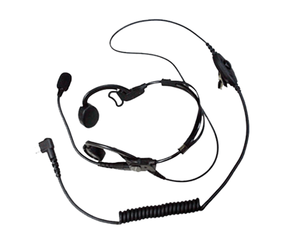 The PMLN5011 Temple Transducer Headset uses two bone vibration speakers for receiving, and a flexible boom microphone for transmitting. Unlike traditional headsets, the Temple Transducer allows the user's ears to be uncovered and completely free to hear surrounding environmental sounds while using the two-way portable radio. An in-line push-to-talk (PTT) button with clothing clip frees the user from holding the radio while communicating