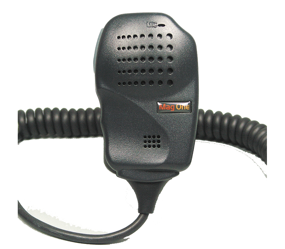 The Remote Speaker Microphone is a water-resistant compact unit that allows talking and listening without removing the radio from the belt or case. It has a coiled cord, Push-to-Talk switch. Clothing clip on microphone back clips securely onto shirt or collar.