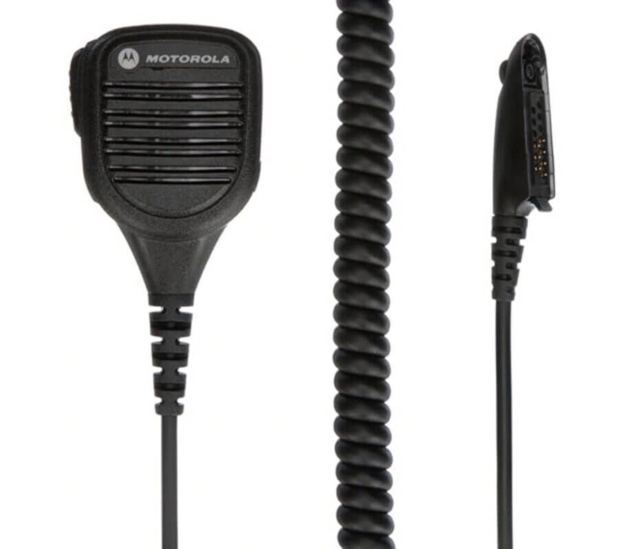 This microphone is water-resistant and allows talking and listening without removing the radio from the belt or case. The noise-canceling acoustics utilize a directional microphone to help eliminate ambient noise making it easier to use in high-noise environments.